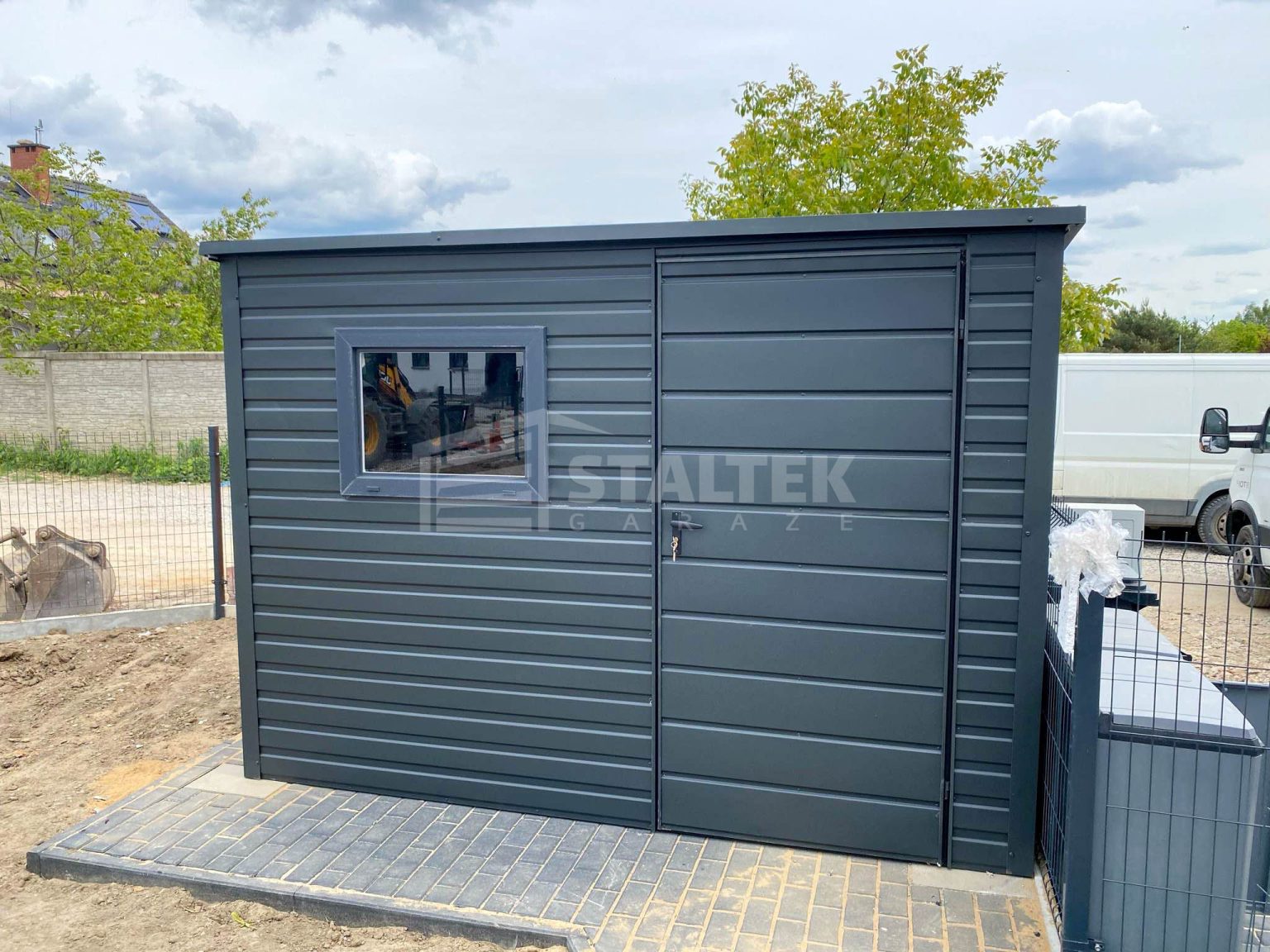 / Schowek – Domek Ogrodowy 2,5x2m – Drzwi – okno – Antracyt – dach spad w tył ST133