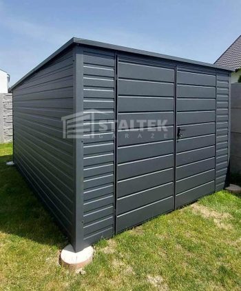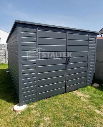Schowek – domek ogrodowy 3,5×4,5m – brama dwuskrzydłowa – antracyt – dach spad w tył ST144