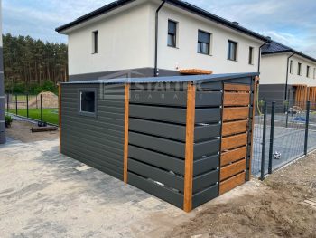 / Schowek – Domek Ogrodowy 3x2m + wiata 2m – 2x Drzwi – okno – jasny orzech – dach spad w tył ST131