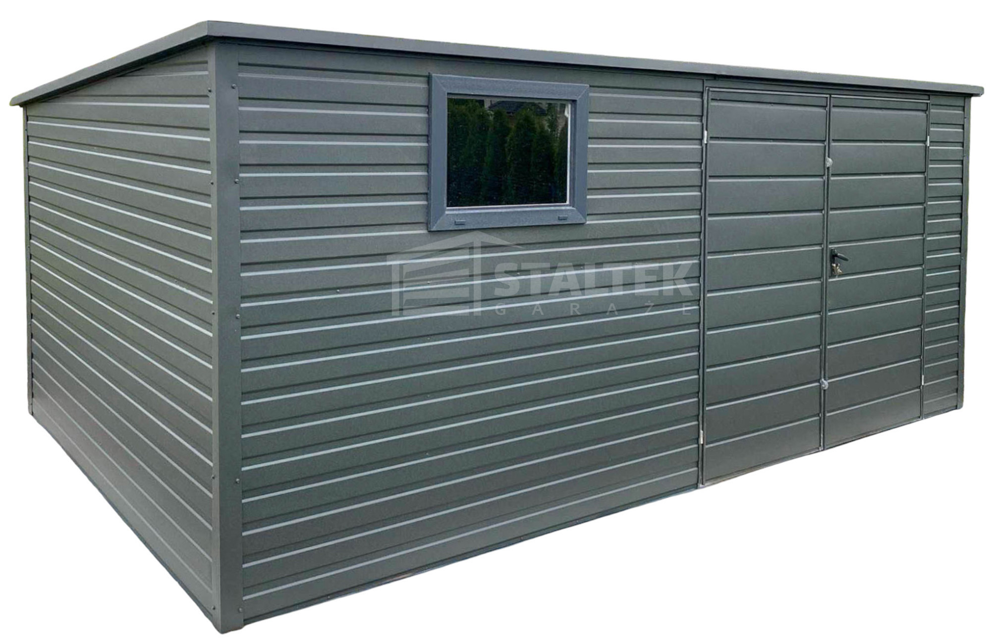 Schowek – Domek Ogrodowy 4,5x3m – Drzwi – okno – antracyt – dach spad w tył ST186