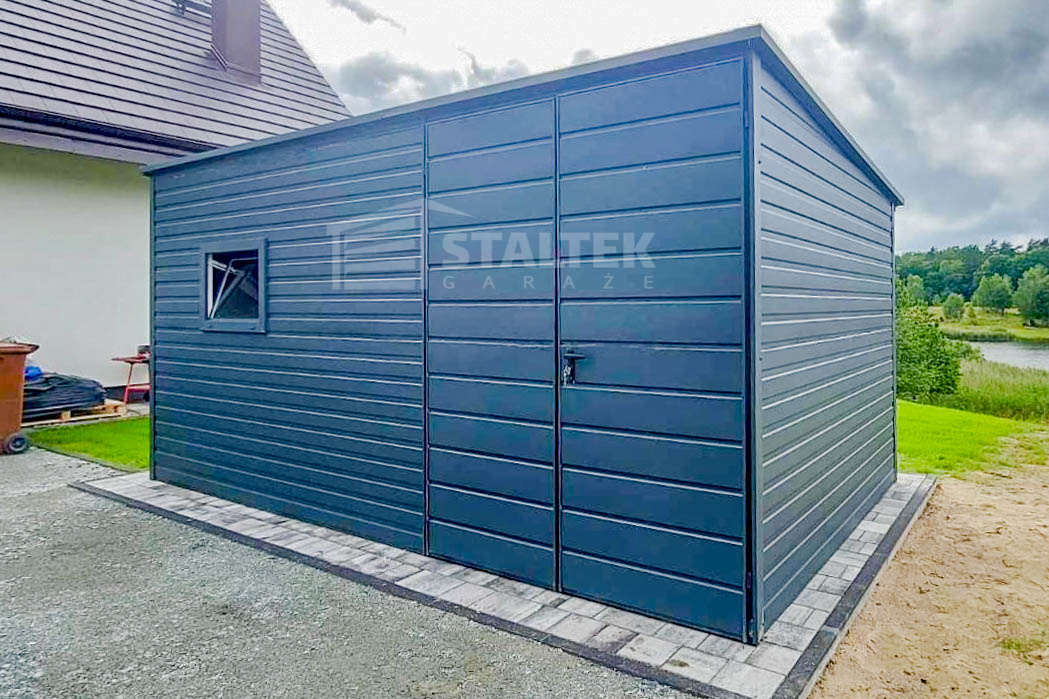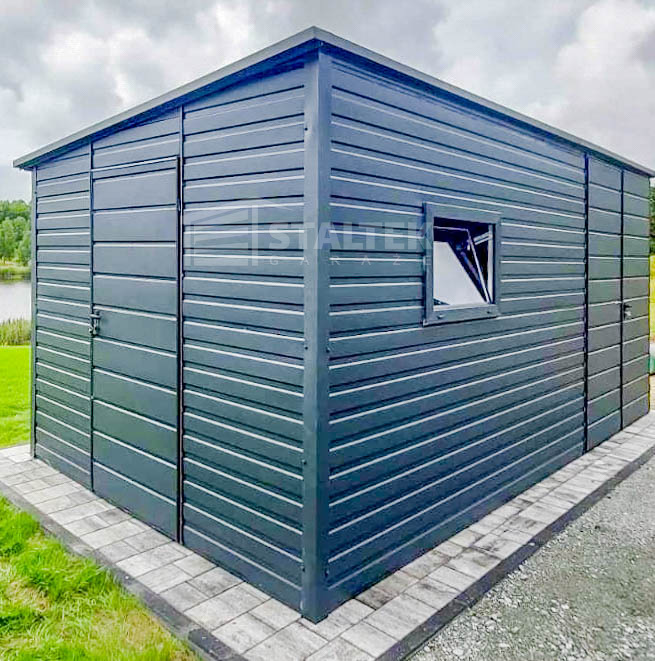 / Schowek – Domek Ogrodowy 4×2,5m Brama Dwuskrzydłowa – Drzwi – Okno – Antracyt – Dach spad w tył ST151