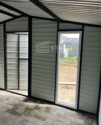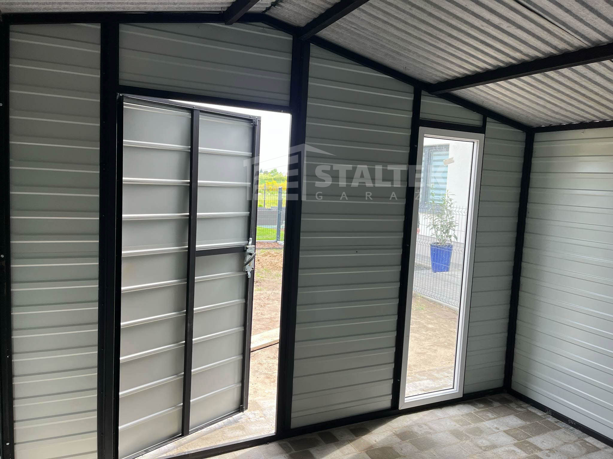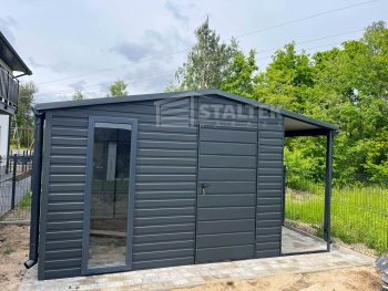 Schowek – Domek Ogrodowy 4×2,5m + Wiata 1×2,5m – Okno – Drzwi – Antracyt – dach Dwuspadowy – rynny ST161