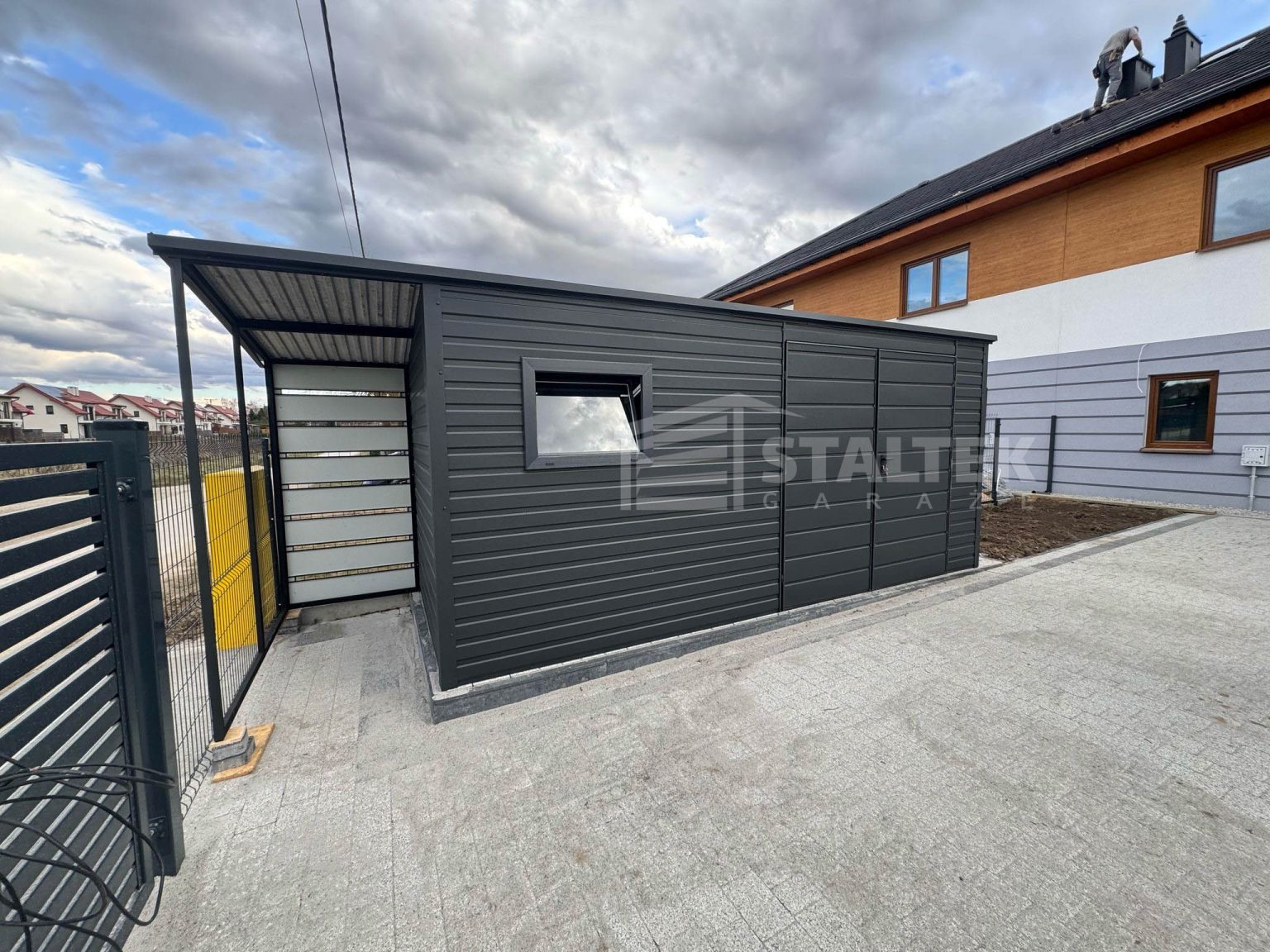 / Schowek – Domek Ogrodowy 5x2m + wiata 1m – Drzwi – okno – antracyt – dach spad w tył ST127