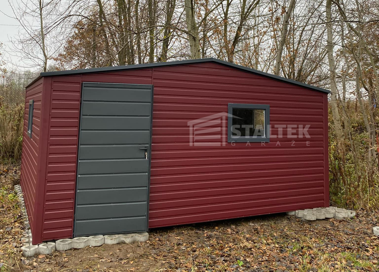 Schowek – Domek ogrodowy 5x4m – drzwi – Antracyt – wiśnia – 2x okna Dach dwuspadowy ST190