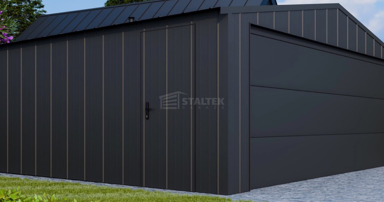 • dach: dwuspadowy, pokryty blachą na rąbek, kolor: antracyt mat 7016