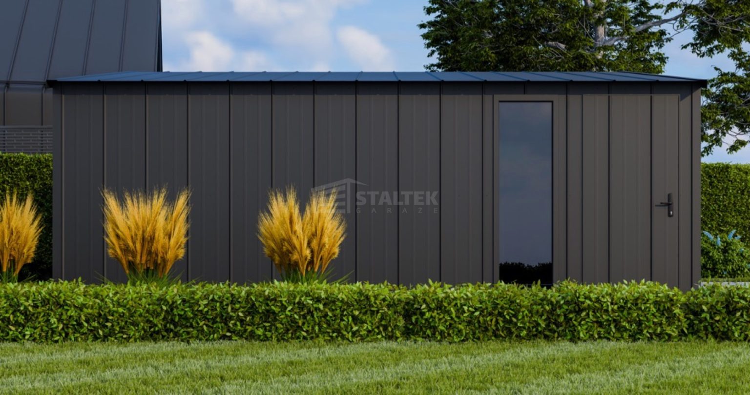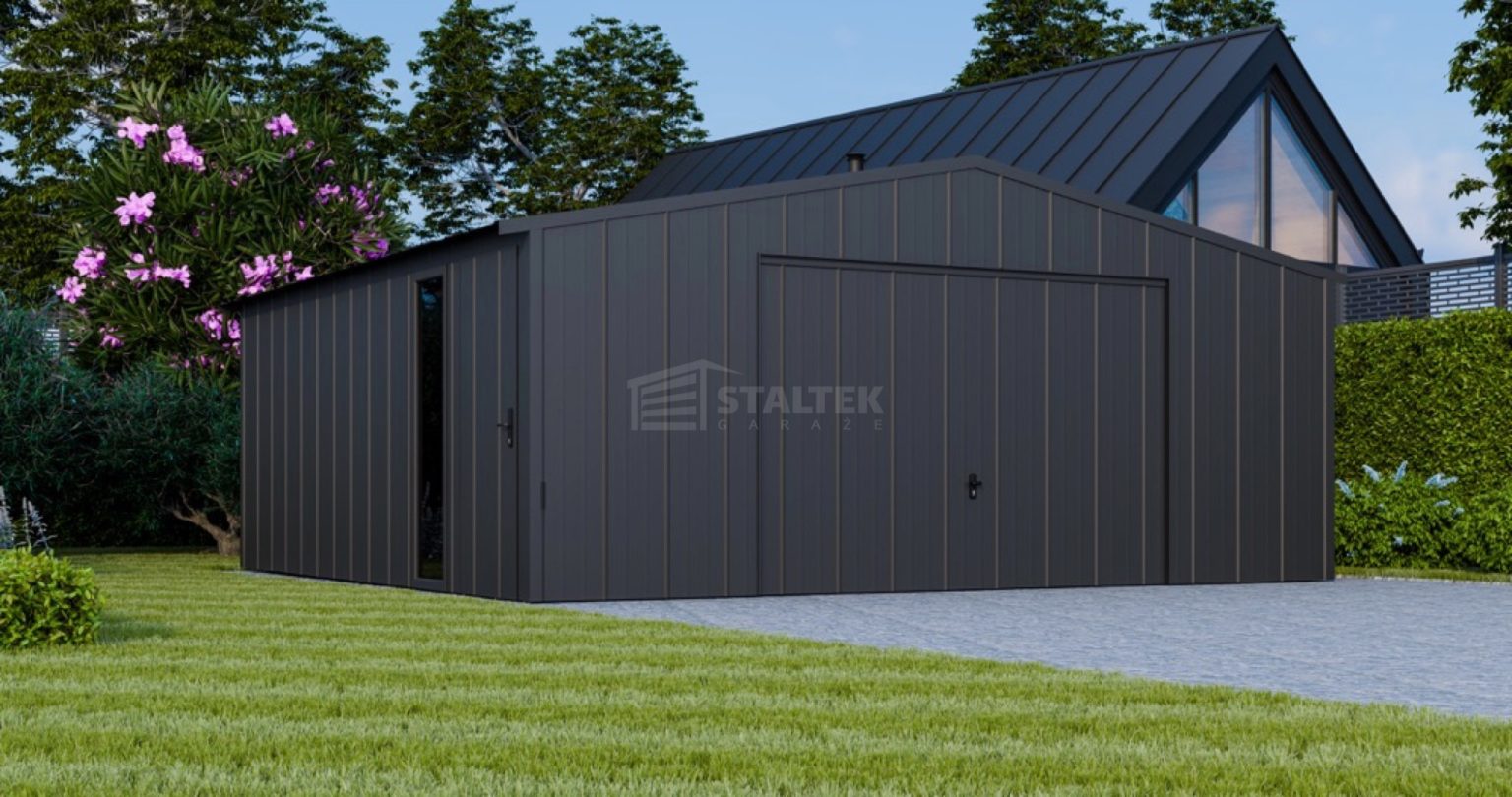 • dach: dwuspadowy, pokryty blachą na rąbek, kolor: antracyt mat 7016