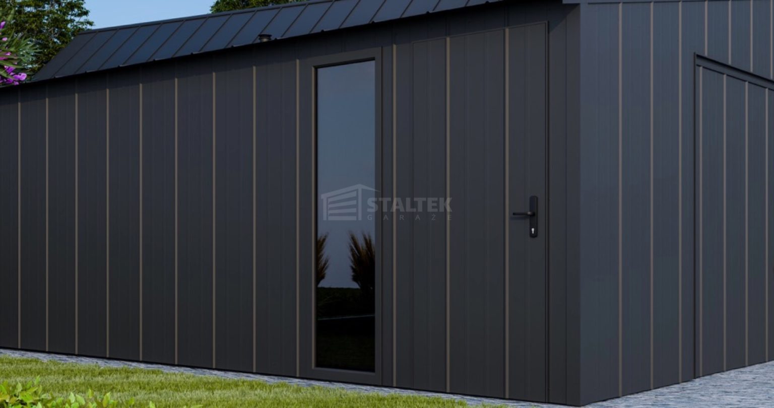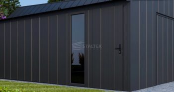 • ściany z blachy na rąbek, kolor: antracyt mat 7016