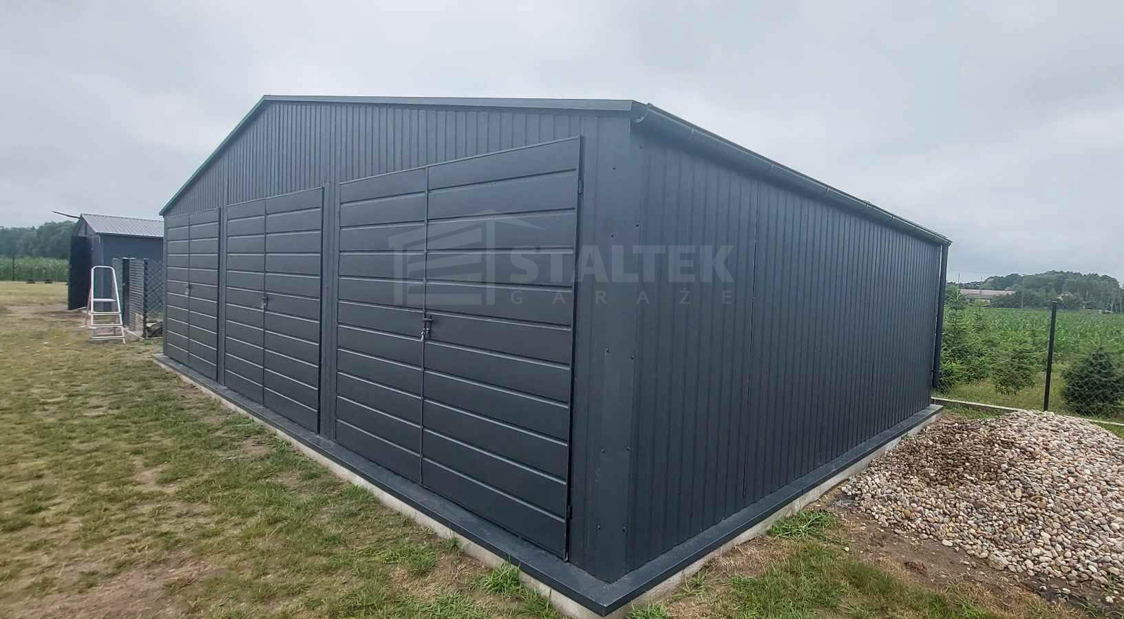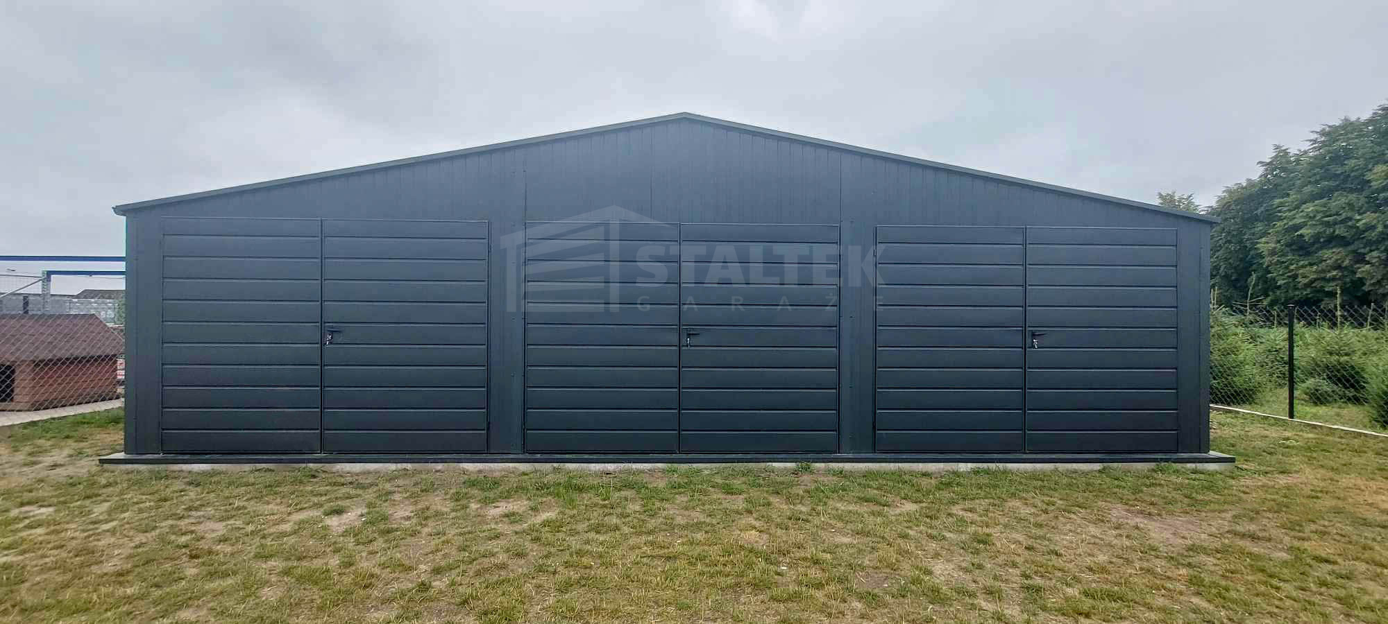 Garaż blaszany 10x6m – 3x Brama – Rynny – Antracyt – Dach dwuspadowy ST179