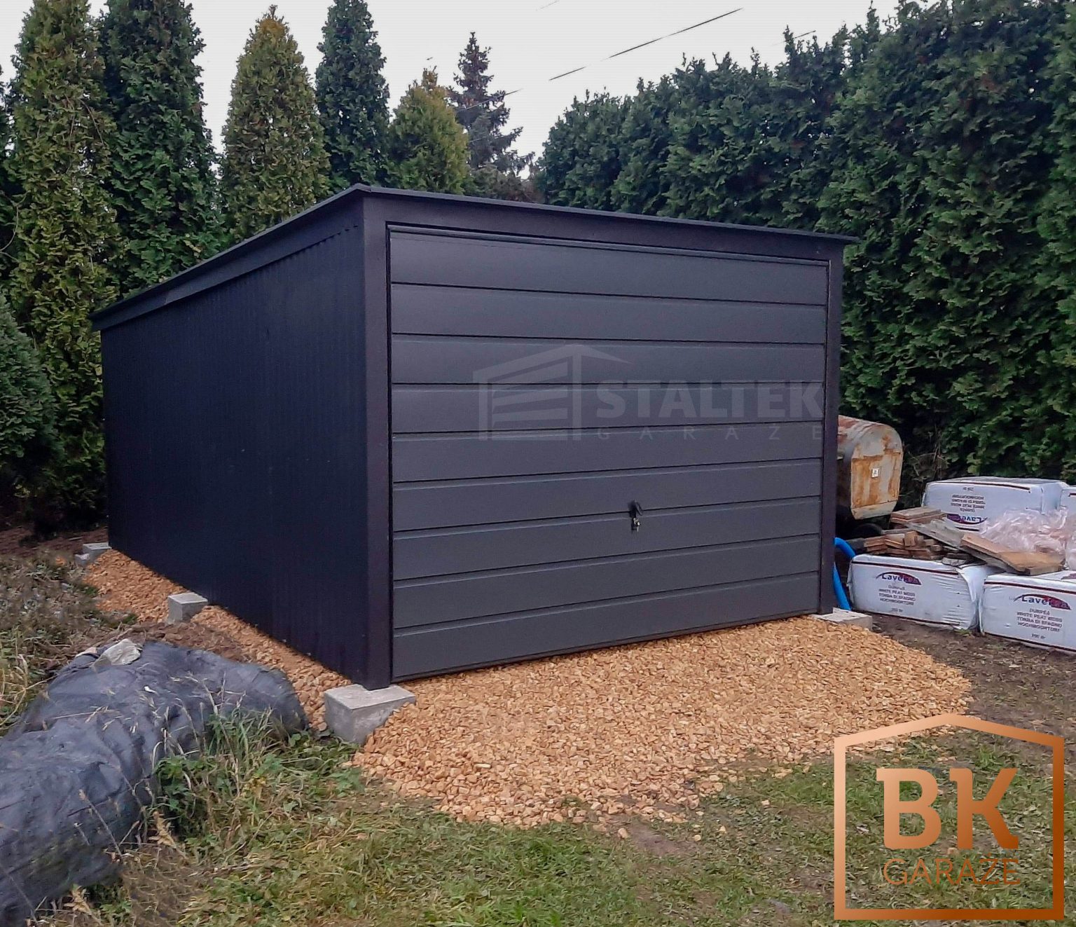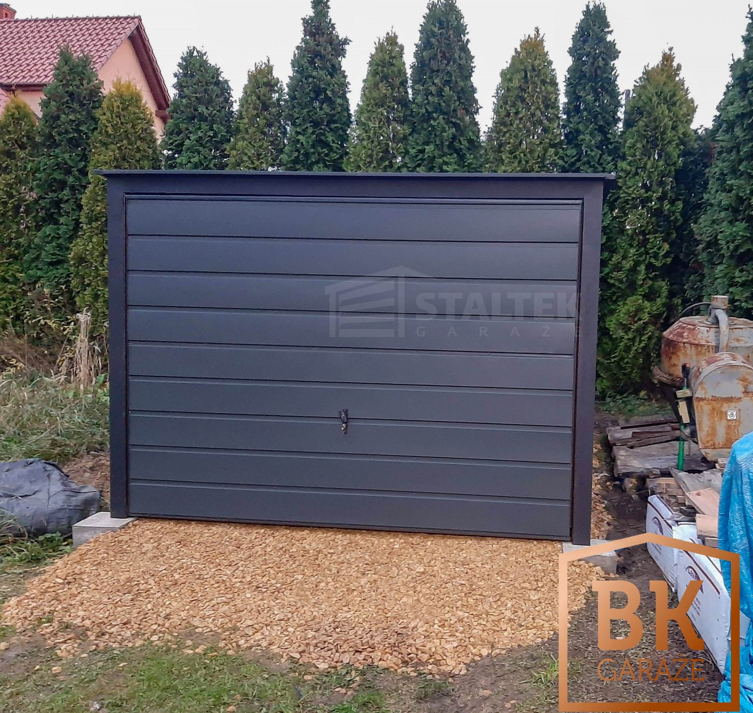 / Garaż blaszany 3×5 – Brama uchylna – antracyt – dach spad w tył ST122