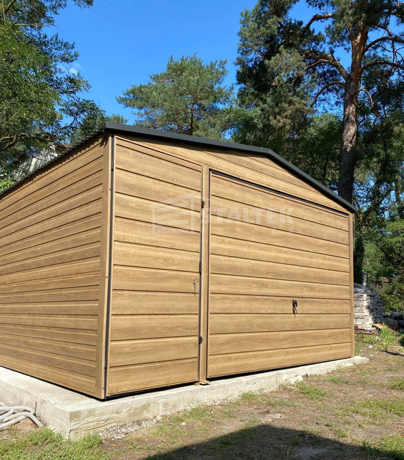 Garaż Blaszany 4x5m – Brama uchylna – drzwi – Winchester – drewnopodobny – dach dwuspadowy ST135