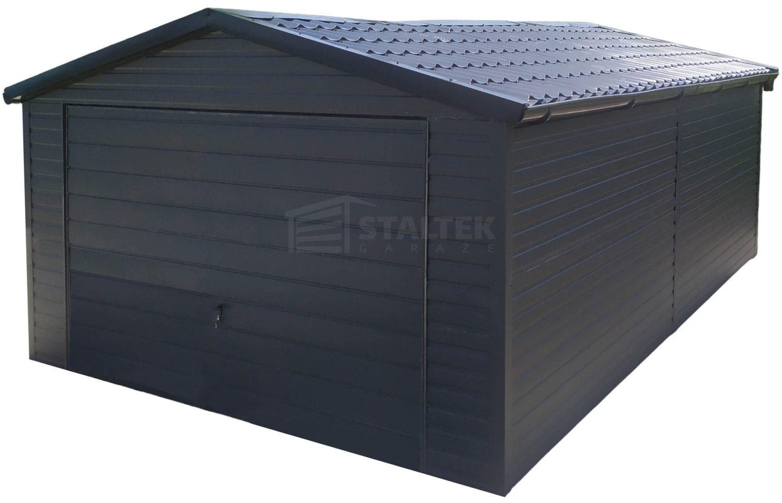 Garaż blaszany 4x6m – Blachodachówka – Brama uchylna – antracyt – rynny – dach dwuspadowy ST168