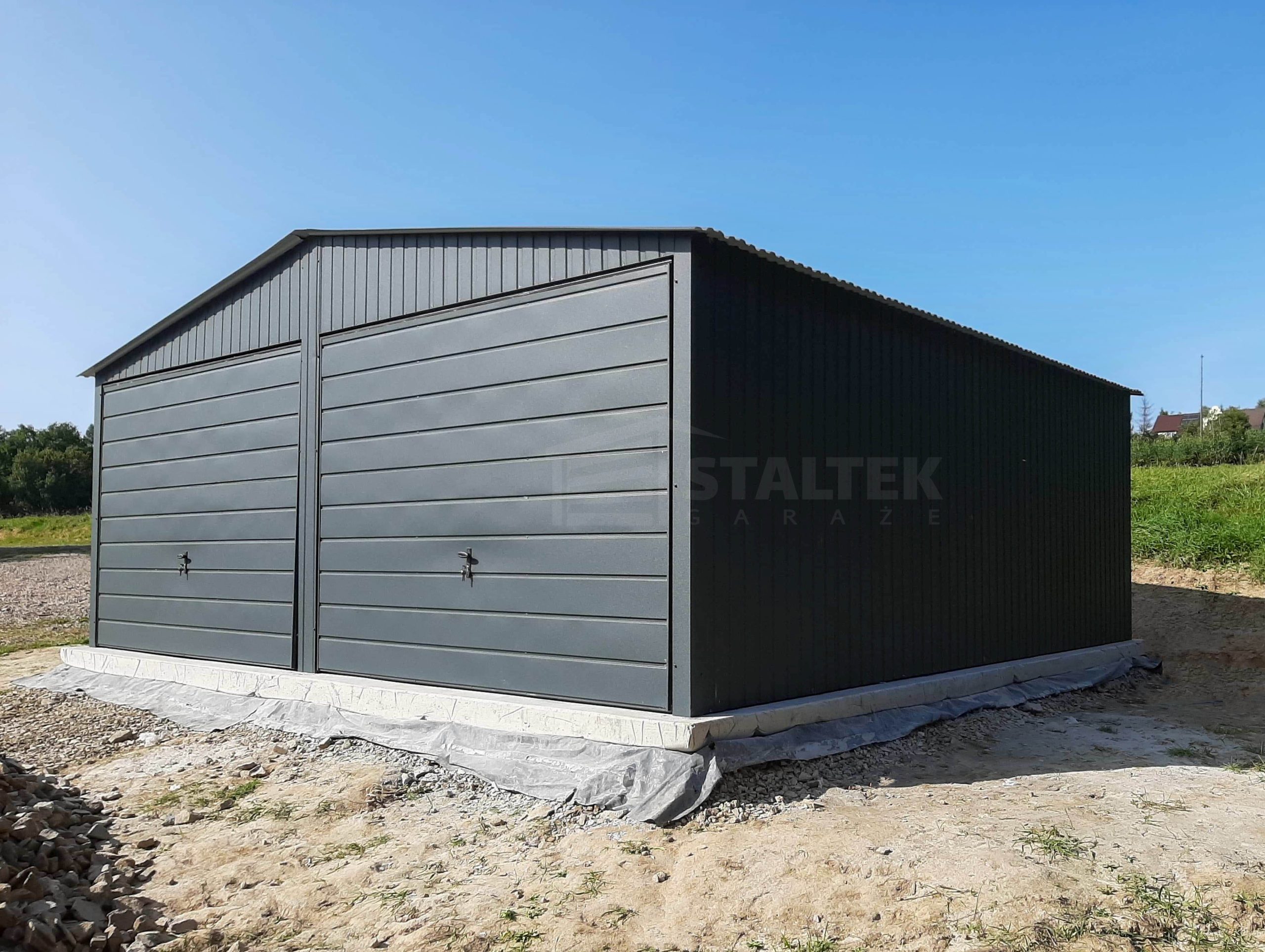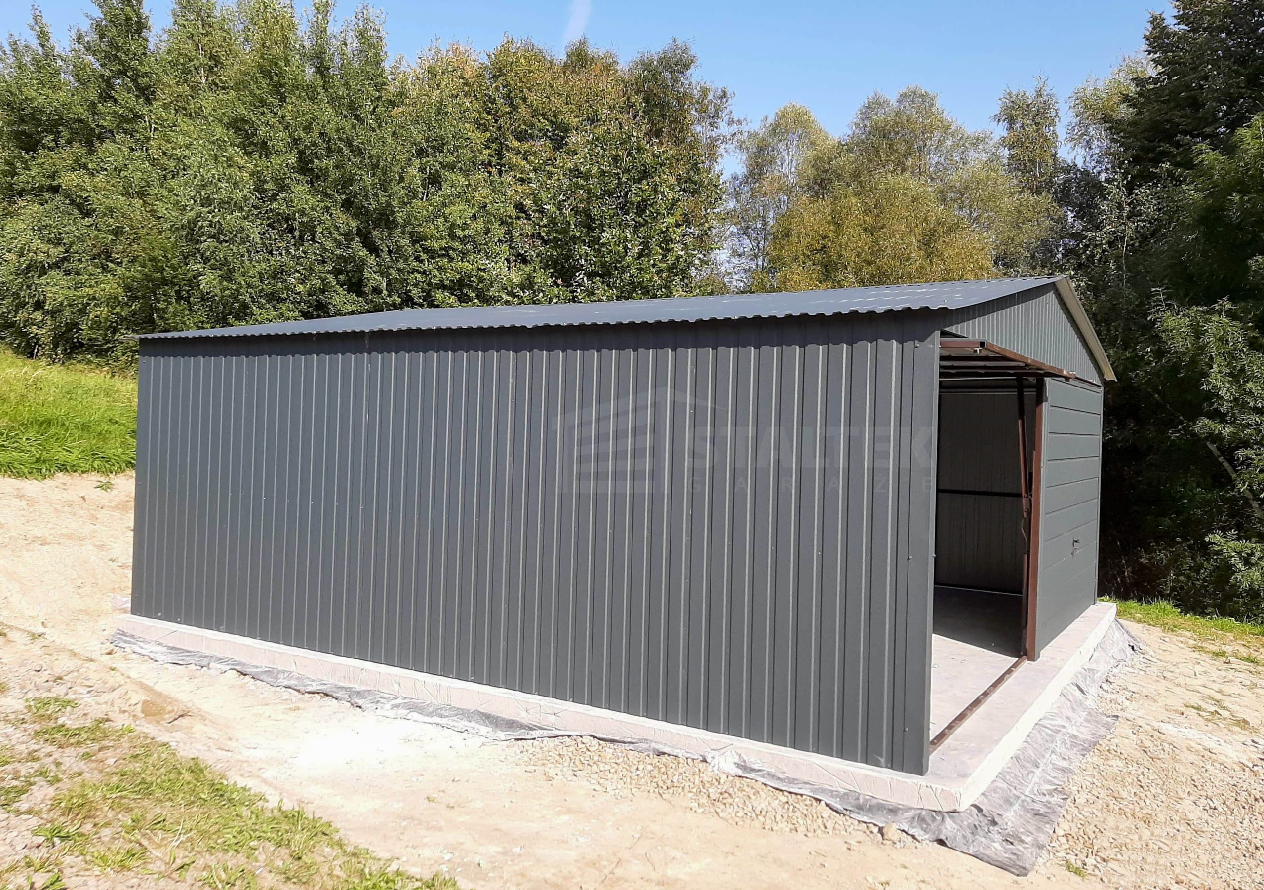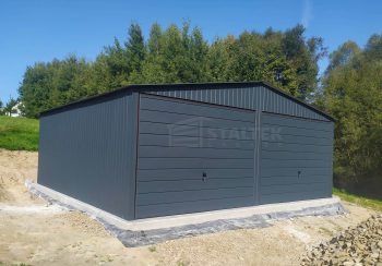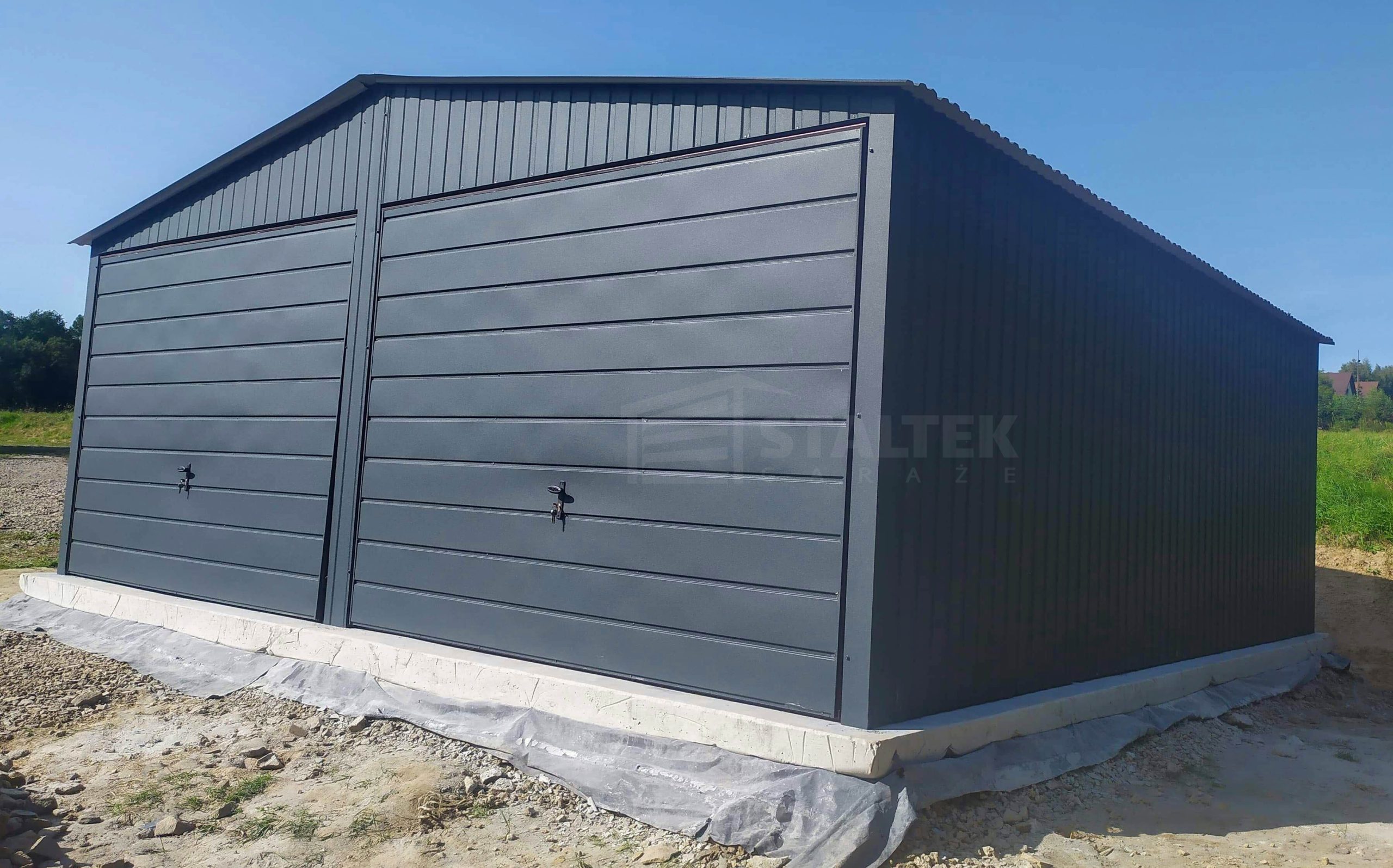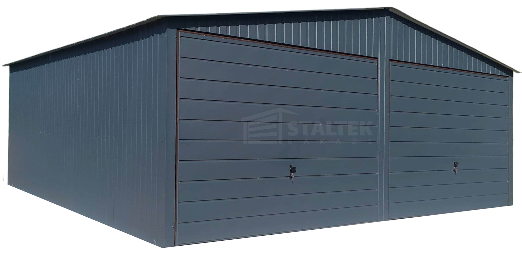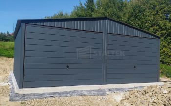 / Garaż blaszany 6×5,8 2x Brama uchylna Antracyt Dach dwuspadowy ST116