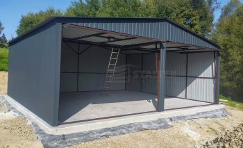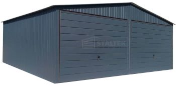 Garaż blaszany 6×5,8 2x Brama uchylna Antracyt Dach dwuspadowy ST116