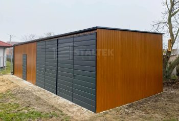/ Hala Garaż blaszany 13×4 – 2x Brama + drzwi drewnopodobny Dach spad w przód ST164