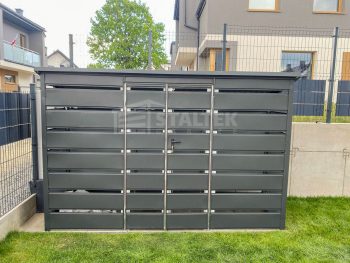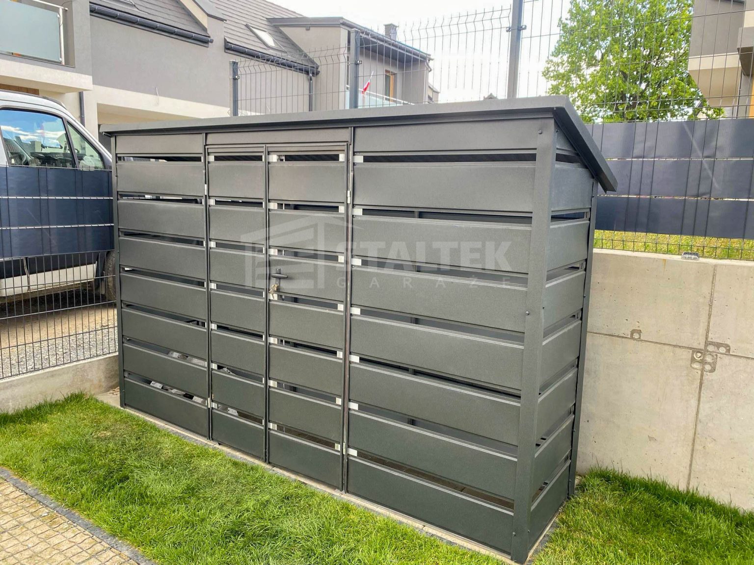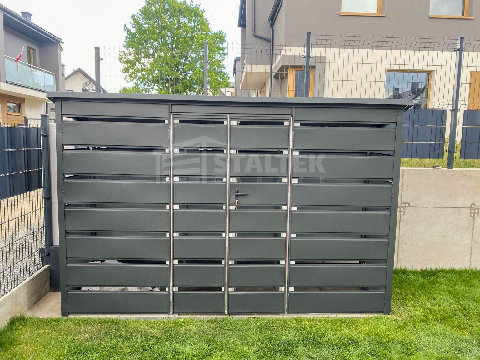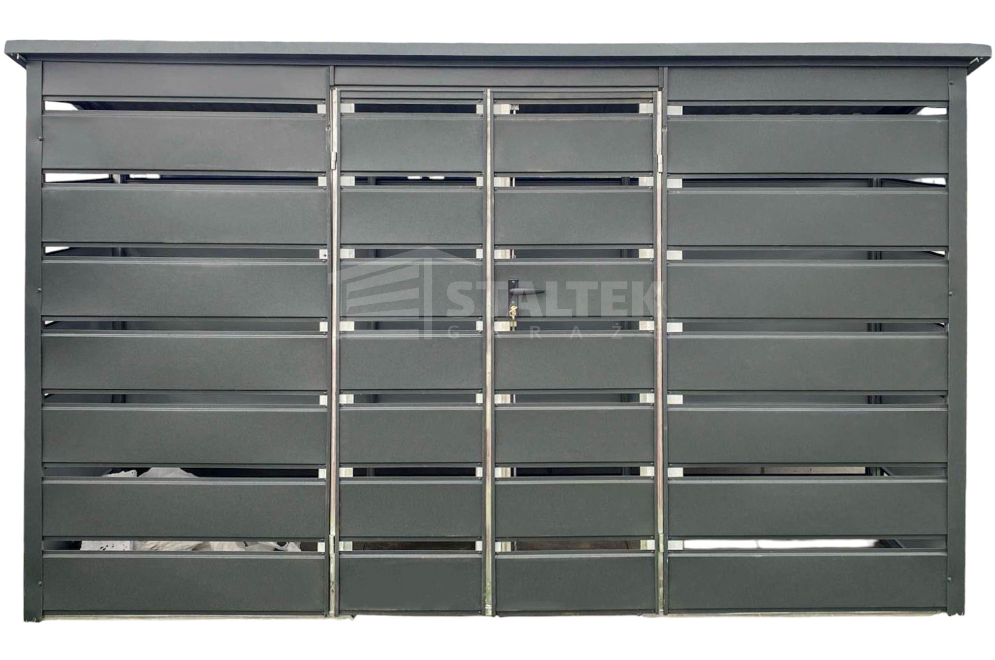 / Wiata śmietnikowa dach prosty 4×0,6m 2x furtka – Antracyt ST126